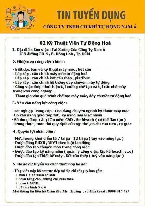 CÔNG TY TNHH CƠ KHÍ TỰ ĐỘNG NAM Á TUYỂN DỤNG